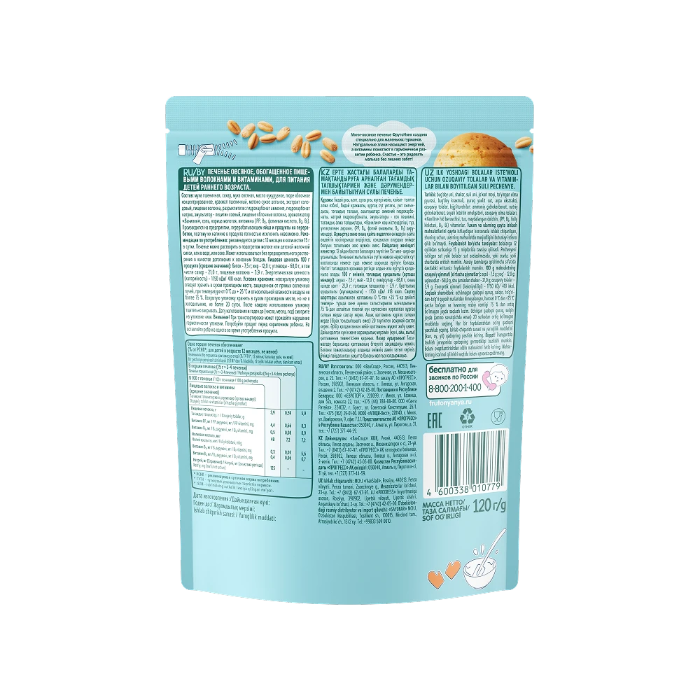Wheat flour, sugar, oat flour, corn oil, concentrated apple puree, wheat starch, whole milk powder, malt extract, dietary fiber, raising agents: ammonium bicarbonate, sodium bicarbonate, emulsifier: soy lecithin, apple dietary fiber, flavoring: vanillin, salt, ground cinnamon, vitamins (PP, B6, folic acid, B2, B1).