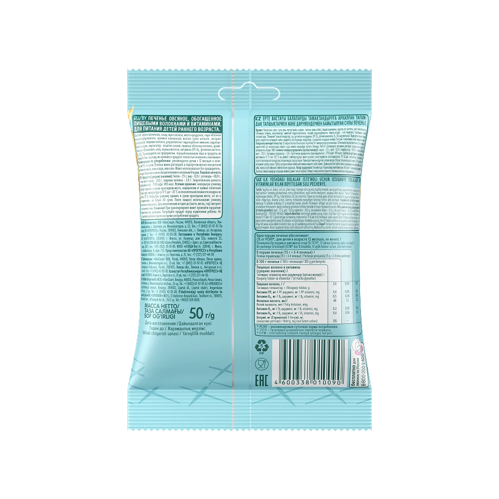 Wheat flour, sugar, oat flour, corn oil, concentrated apple puree, wheat starch, whole milk powder, malt extract, dietary fiber, raising agents: ammonium bicarbonate, sodium bicarbonate, emulsifier: soy lecithin, apple dietary fiber, flavoring: vanillin, salt, ground cinnamon, vitamins (PP, B6, folic acid, B2, B1).