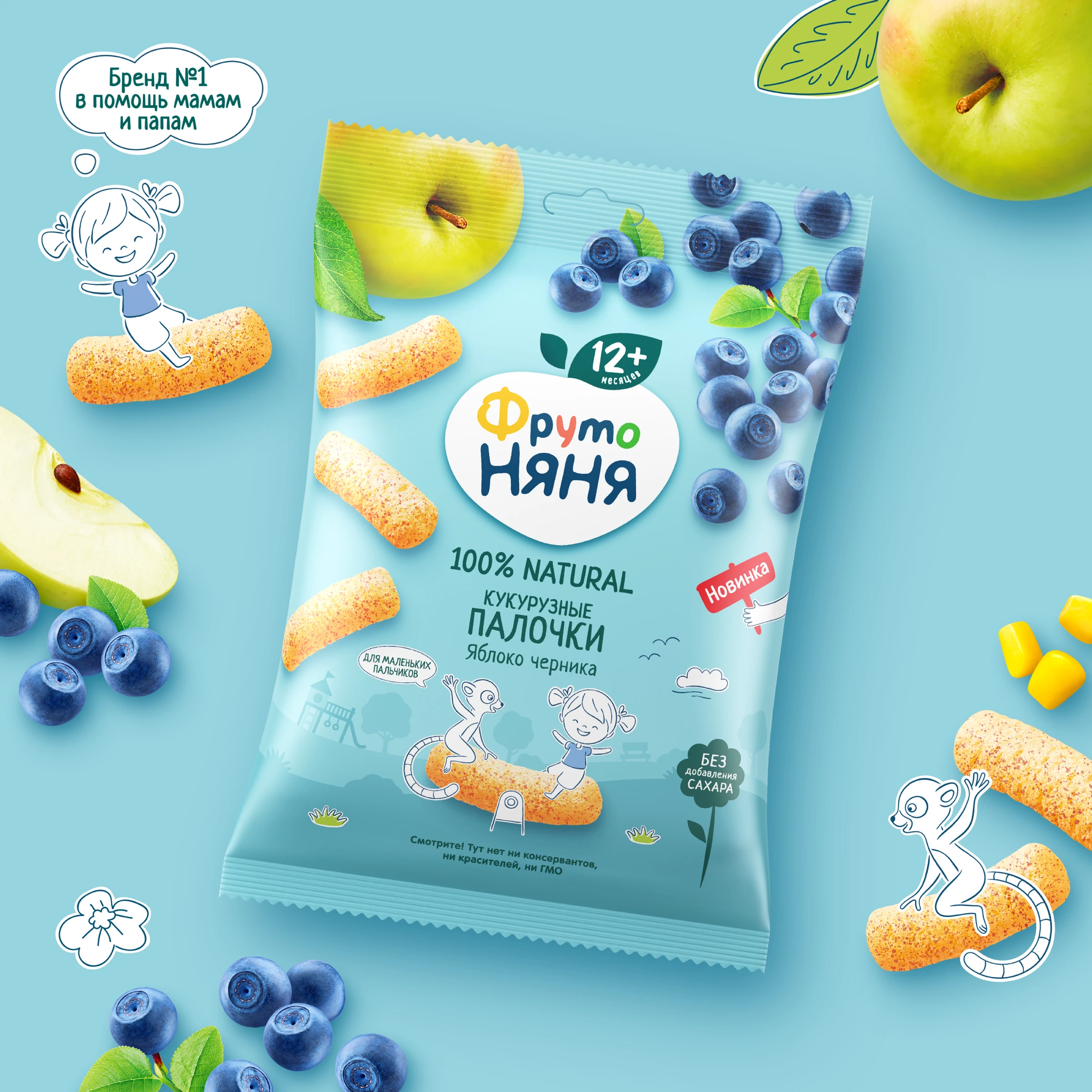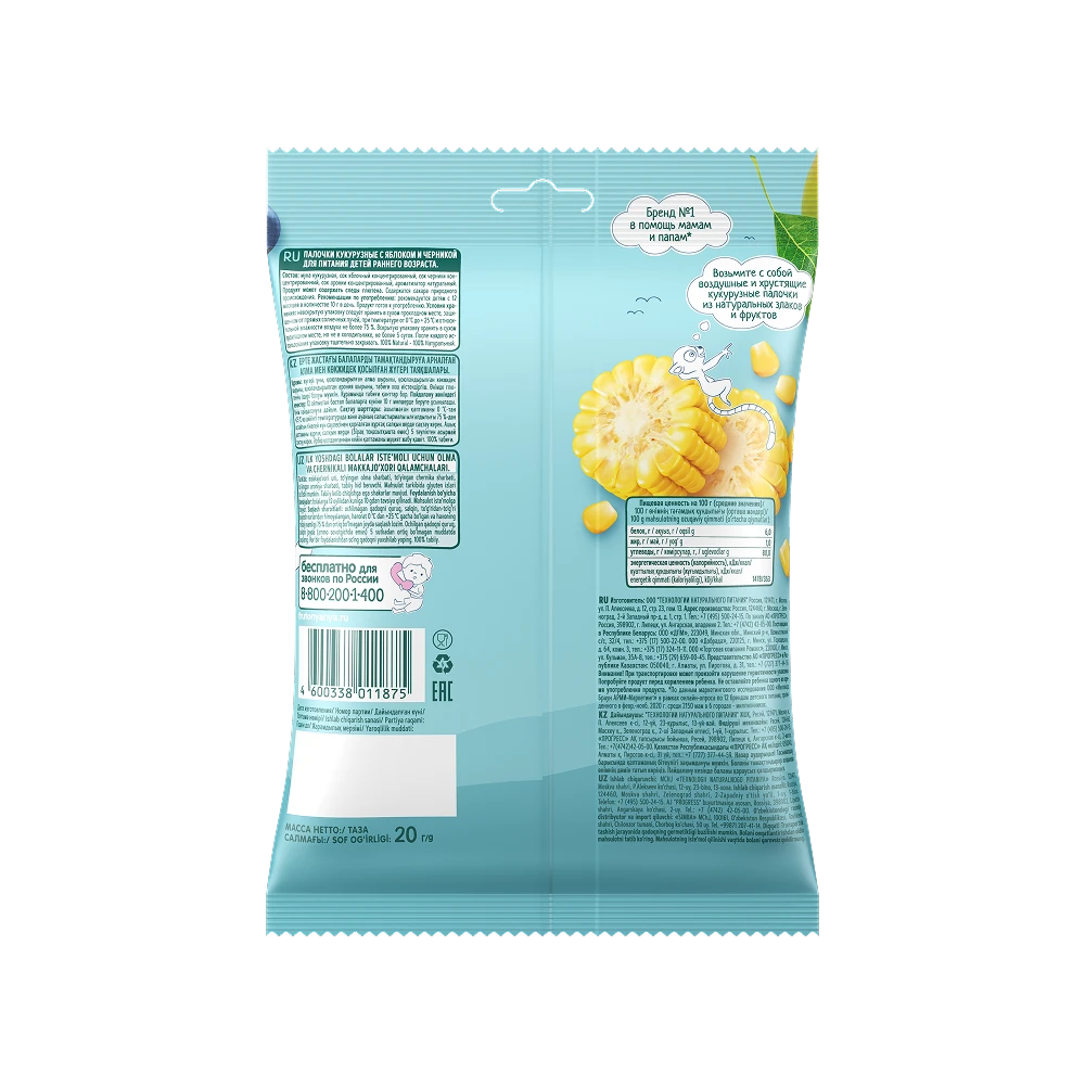 Corn flour, concentrated apple juice, concentrated blueberry juice, concentrated aronia juice, natural flavoring. Contains naturally occurring sugars. May contain traces of gluten.
