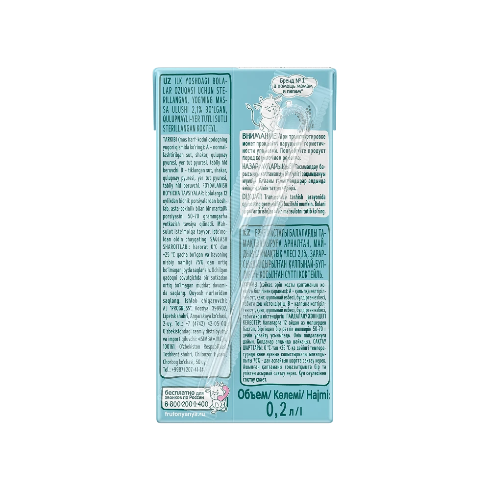 Recommended for children aged 12 months and older, starting with small amounts; gradually increase consumption up to 50-70 g per day. Shake well before consumption. Please taste the product before giving it to your child. Do not leave your child unattended during consumption.