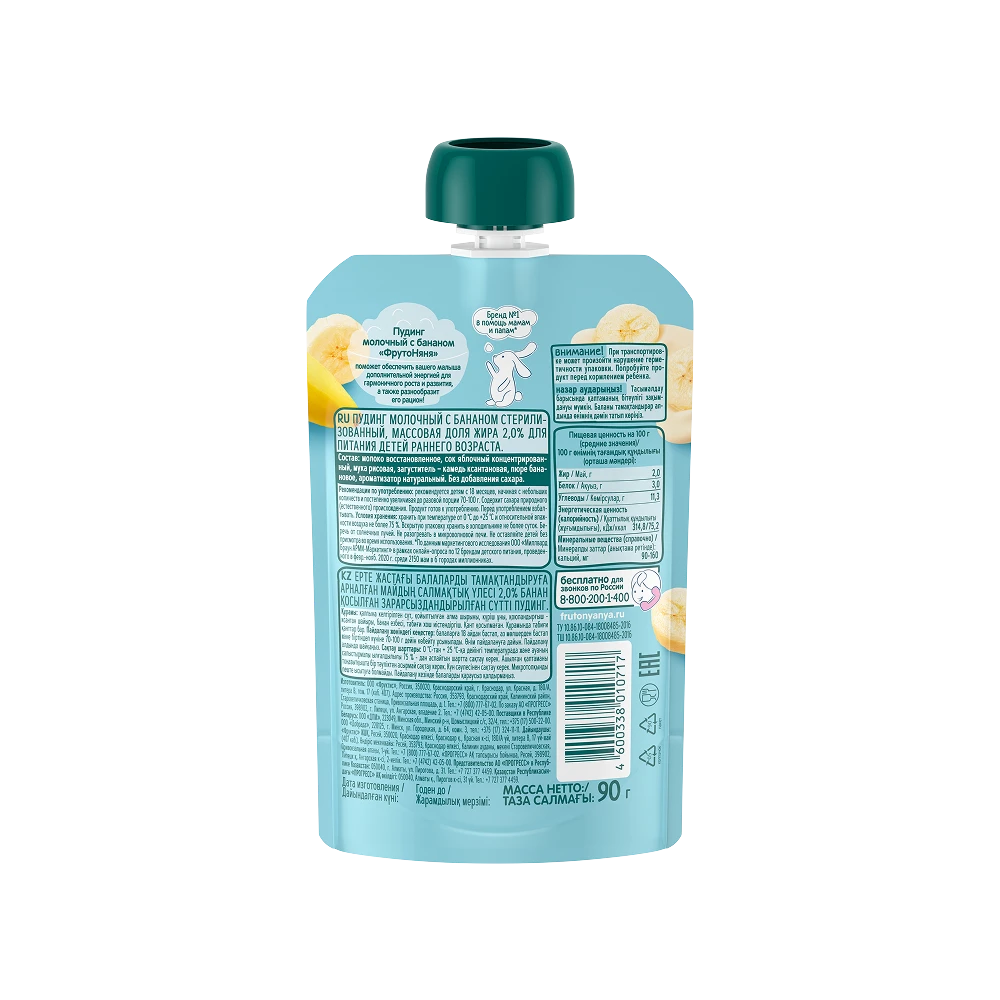 Reconstituted milk, concentrated apple juice, rice flour, thickener – xanthan gum, banana puree, natural flavoring. No added sugar.