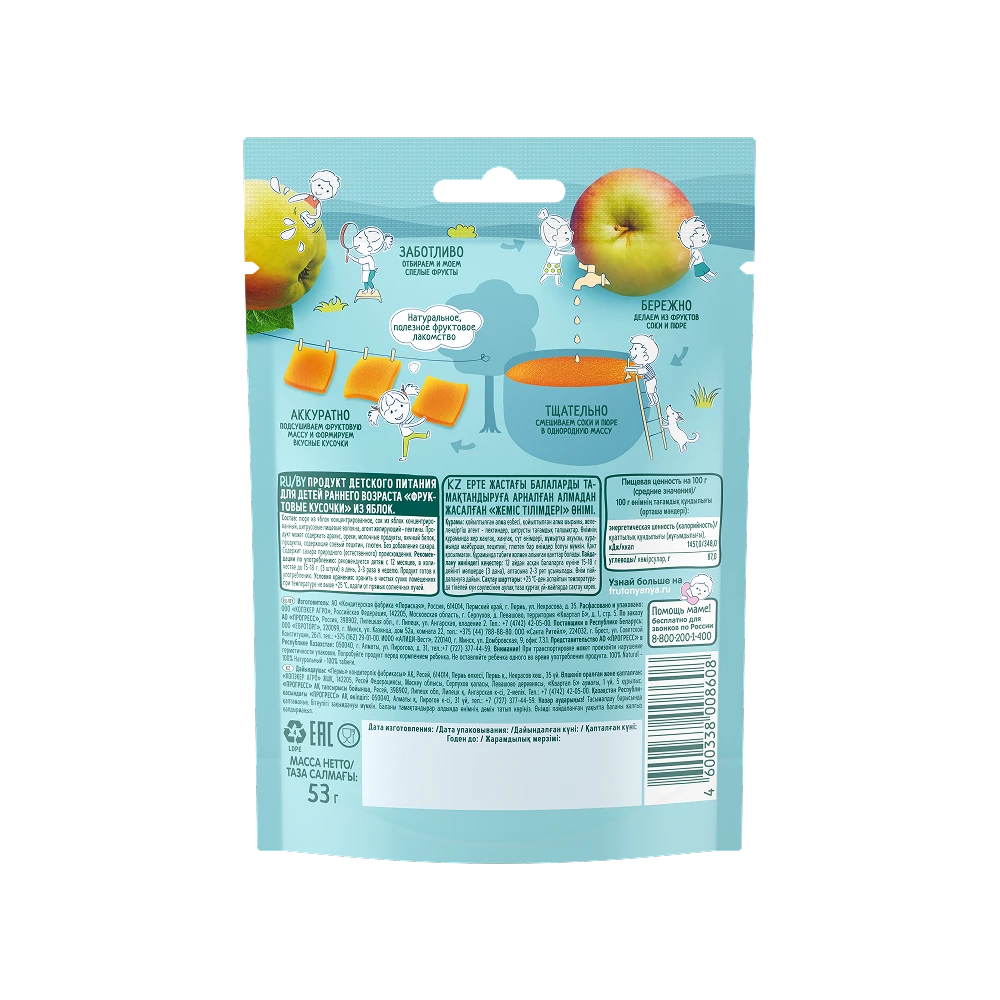 Recommended for children from 12 months of age, up to 15–18 g (2–3 pieces) per day, 2–3 times per week. Product is ready to eat. Always taste the product before feeding your child. Do not leave your child unattended while eating.
