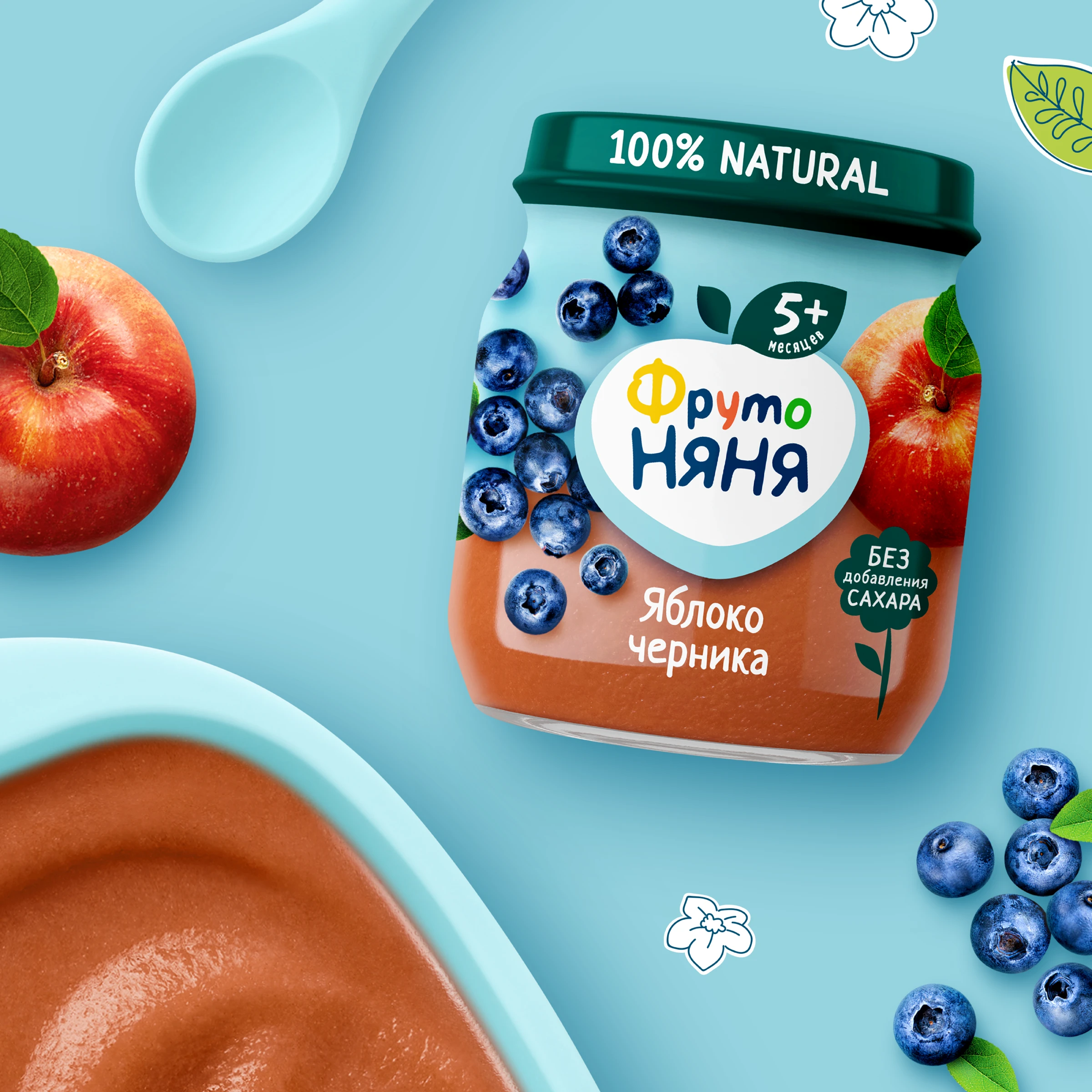 Apple puree, blueberry puree.