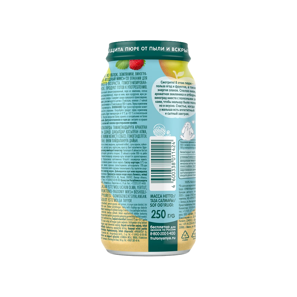 Recommended for children aged 8 months and older, starting with 1 teaspoon 2 times per day; gradually increase consumption up to 100 g per day by the age of 12 months. Ready-to-eat. Please taste the product before giving it to your child. Do not use the product if you do not hear a click when opening the lid!