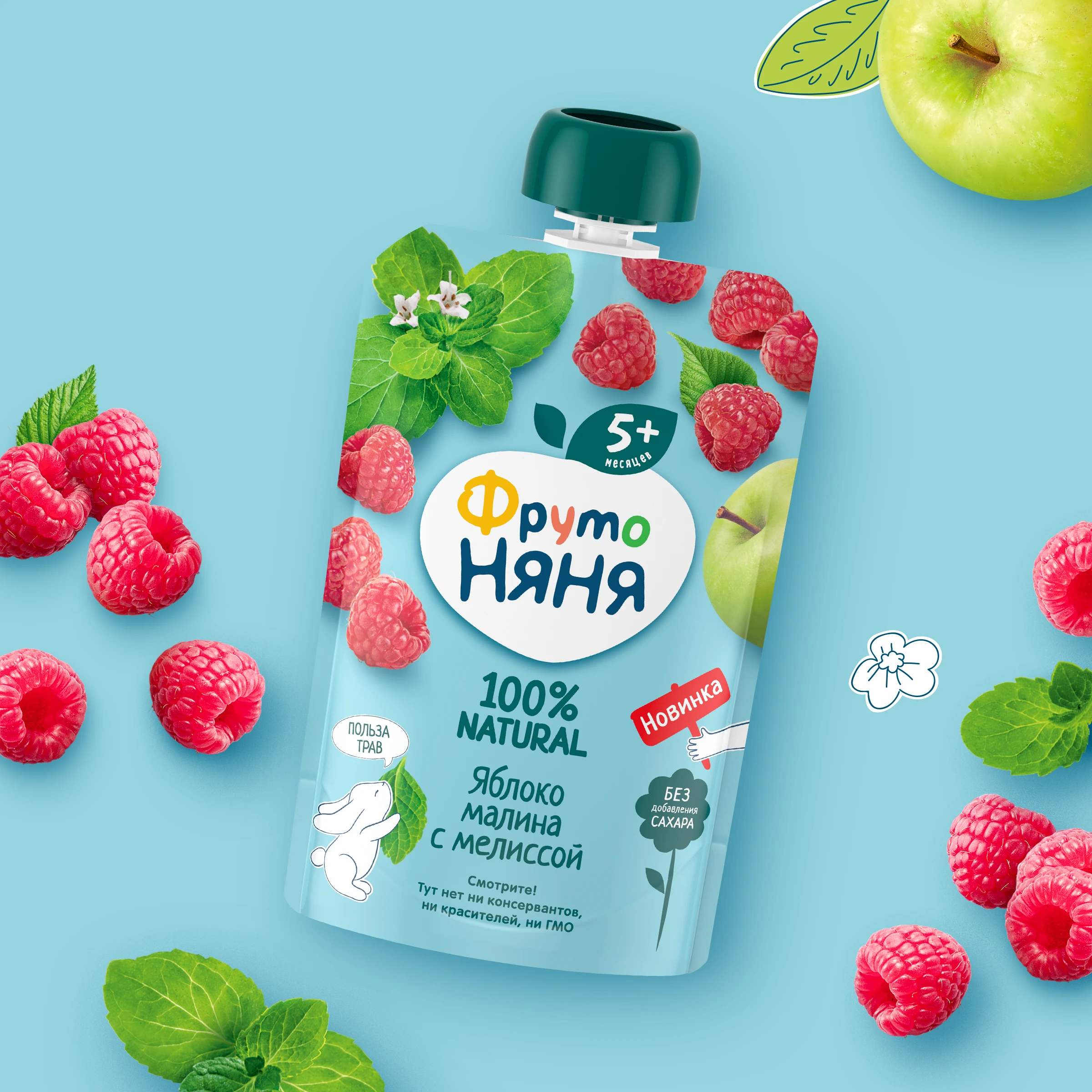 Apple puree, raspberry puree, apple juice concentrate, drinking water, lemon balm extract