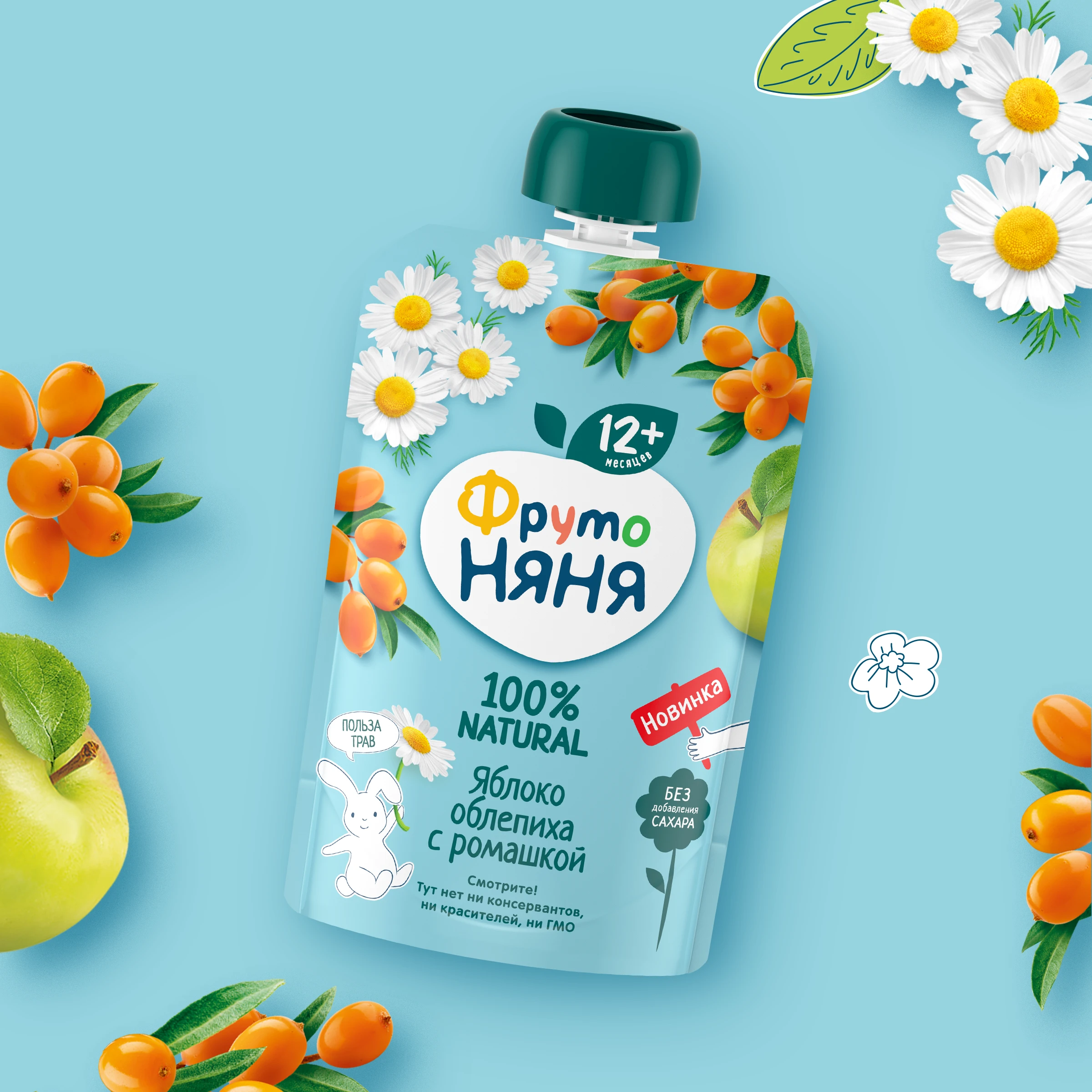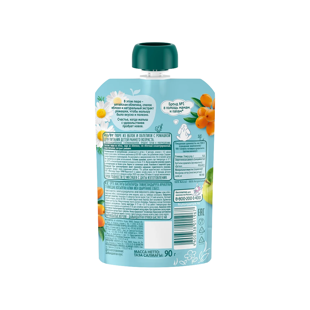 Apple puree, sea buckthorn puree, apple juice concentrate, drinking water, chamomile extract.