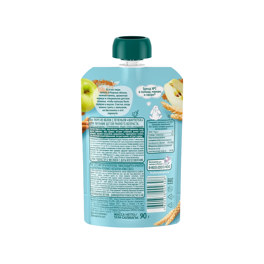 Apple puree, cookies (wheat flour, sugar, butter, chicken eggs, malt extract, whole milk powder, corn starch, leavening agent: sodium bicarbonate), apple juice concentrate, vanilla extract, cinnamon extract, drinking water.
