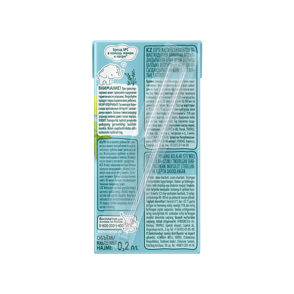Recommended for children aged 6 months and older, starting with 1/2 teaspoon 1-2 times a day; gradually increase consumption to 80-100 ml per day by the age of 12 months. WARNING! The package integrity can be compromised in transit. Please taste the product before giving it to your child.