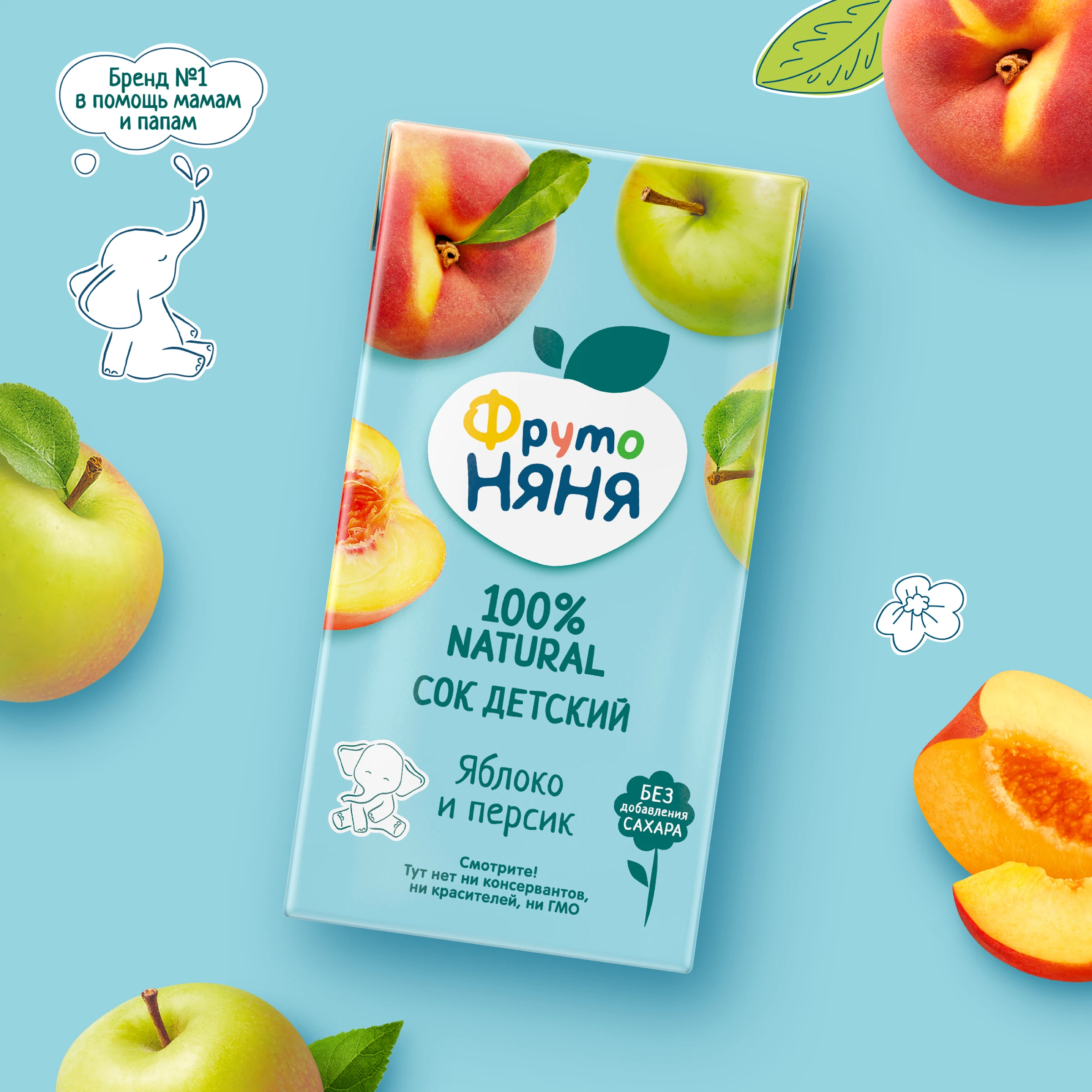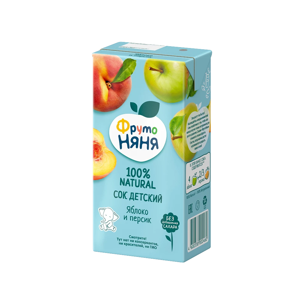 Apple juice, peach purée. Produced using juice and purée concentrates.