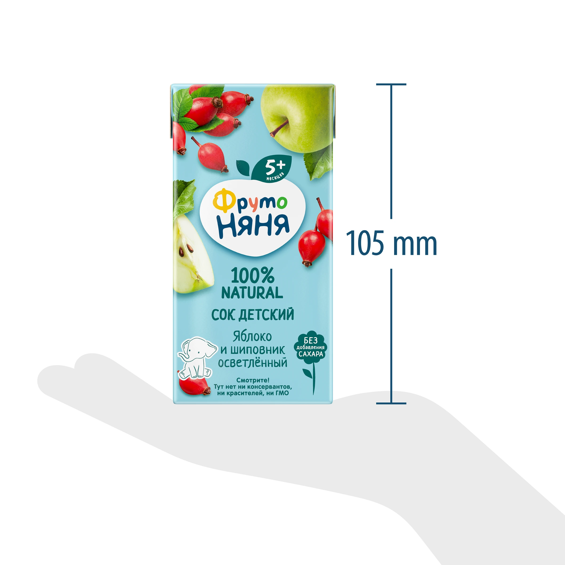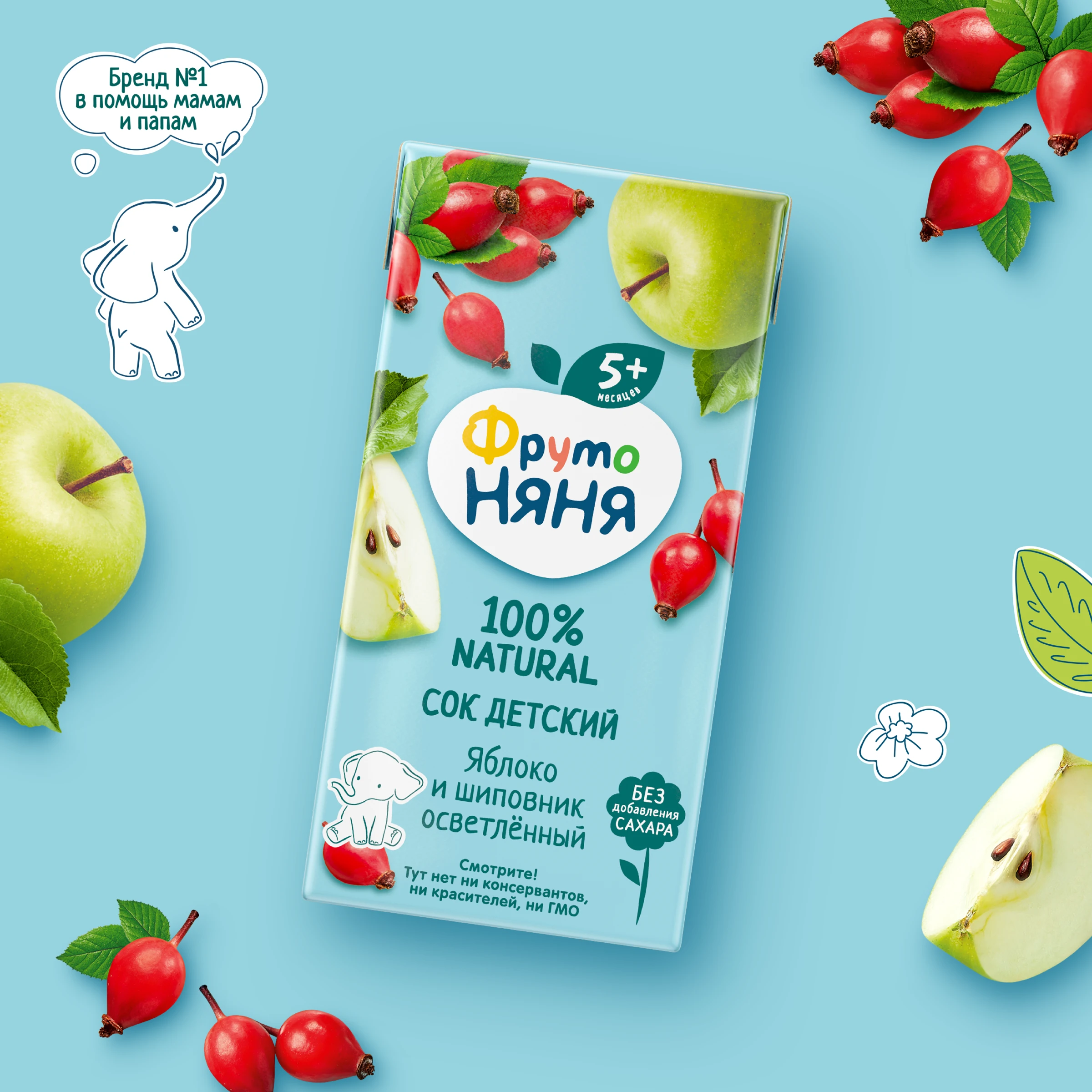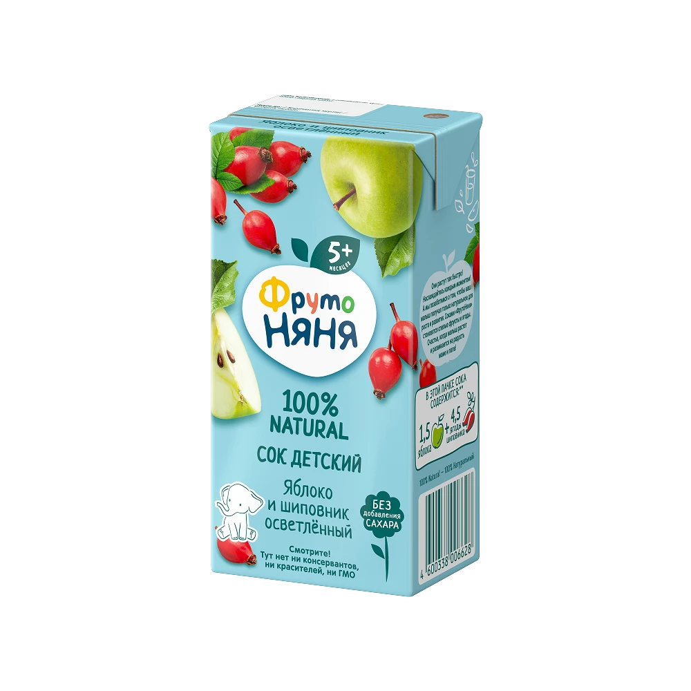 Apple juice, rosehip juice. Produced using juice concentrates.