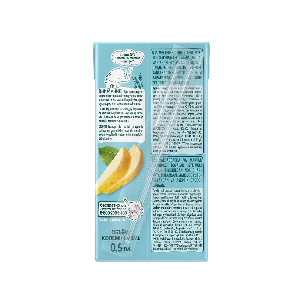 Pear juice, acidity regulator: citric acid. Produced using juice concentrate.