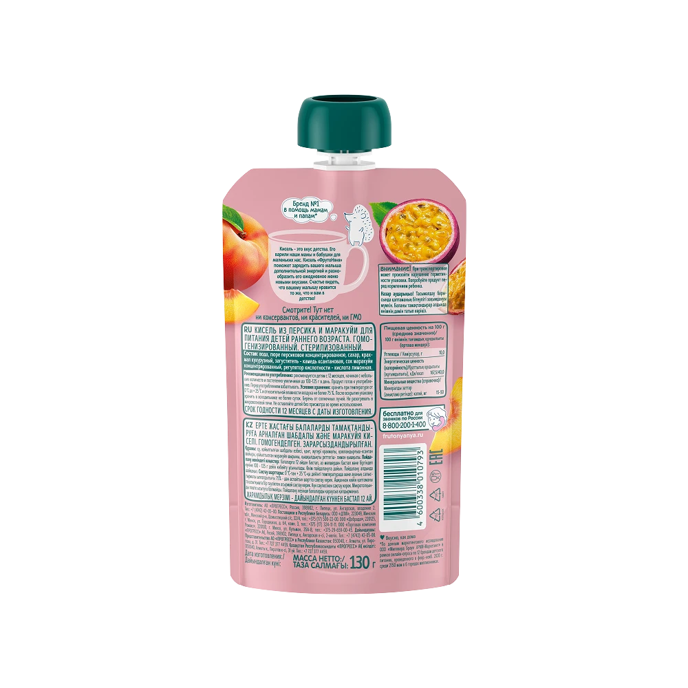 Water, peach purée concentrate, sugar, corn starch, thickening agent: xanthan gum, passion fruit juice concentrate, acidity regulator: citric acid.