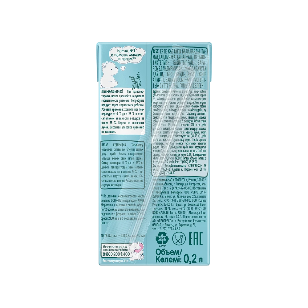 Ready-to-eat. Shake well before consumption. The porridge is recommended for children aged 6 months and older (120-150 g per day); increase the serving size up to 200 g by the age of 12 months. Taste the product before giving it to your child. Before feeding, pour the needed amount of porridge into a clean bowel. Warm up to feeding temperature (36-37 °C), if necessary, and stir. The product can be consumed from a feeding bottle, with a spoon or from a cup. Do not store if opened. Do not leave your child unattended while using the product, as the straw may become soaked in the mouth. Use the straw within 30 minutes from its first contact with the product.