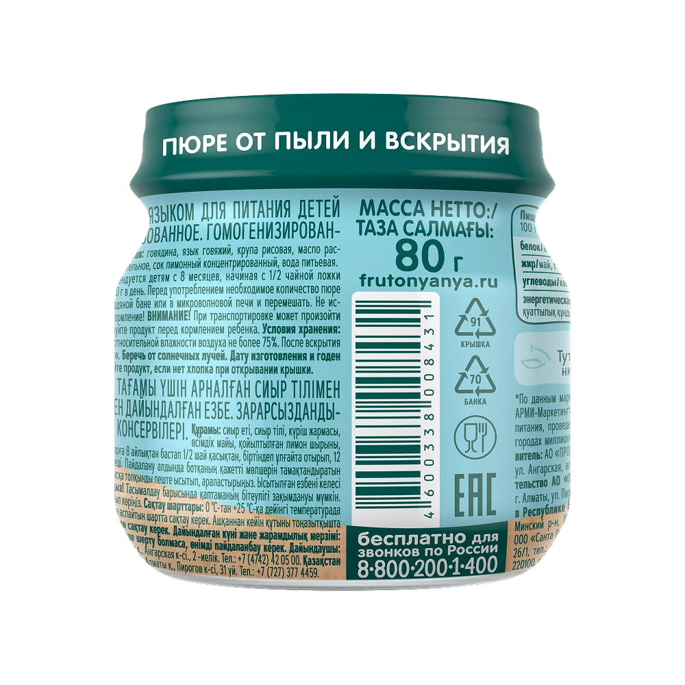 Beef with Tongue Puree is recommended for babies from 8 months of age, starting with ½ teaspoon, gradually increasing to 60–70 g per day by 12 months. Before feeding, warm the required amount to feeding temperature in a water bath or microwave, and stir well. Do not reuse any leftover warmed puree for the next feeding.