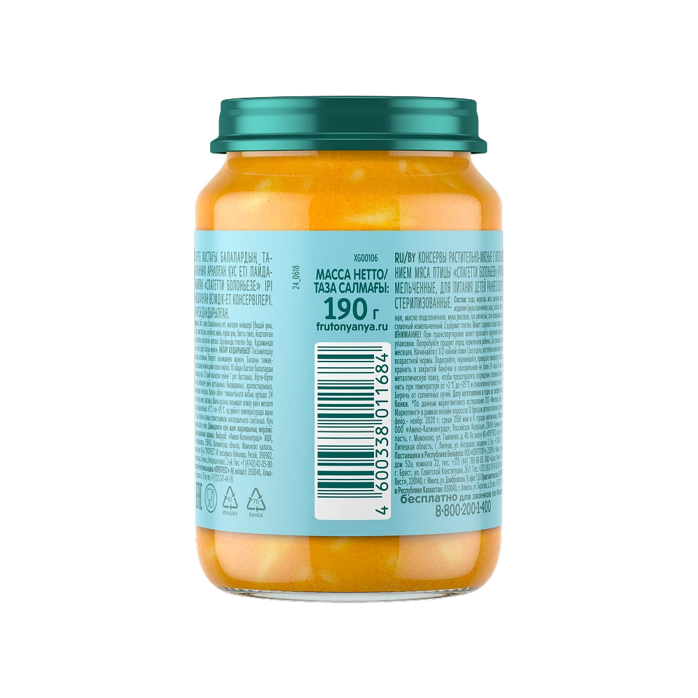Water, carrot, chicken meat, tomato paste, pasta (wheat flour, water), Squash, sunflower oil, rice flour, onion, iodized salt, dried oregano. Contains gluten. May contain traces of mustard and sesame.